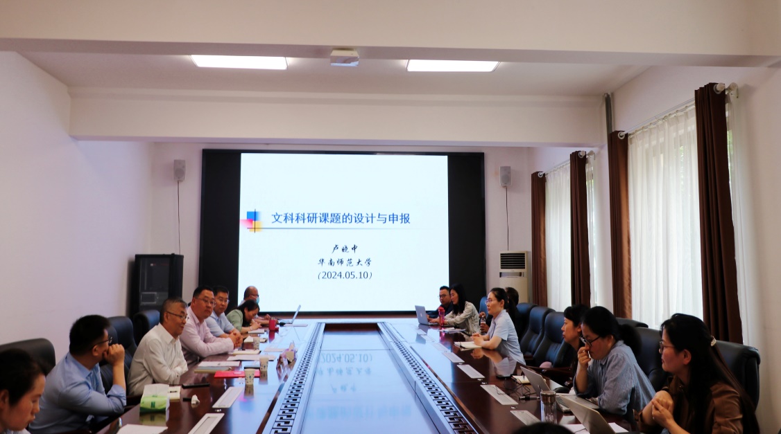 5月10日上午,sunbet游戏官网特邀华南师范大学粤港澳大湾区教育发展高等研究院院长,卢晓中教授开展“文科科研课题的设计与申报”专题讲座。讲座由学院院长孙旭主持,学院领导班子成员、全体教师参与本次讲座。
