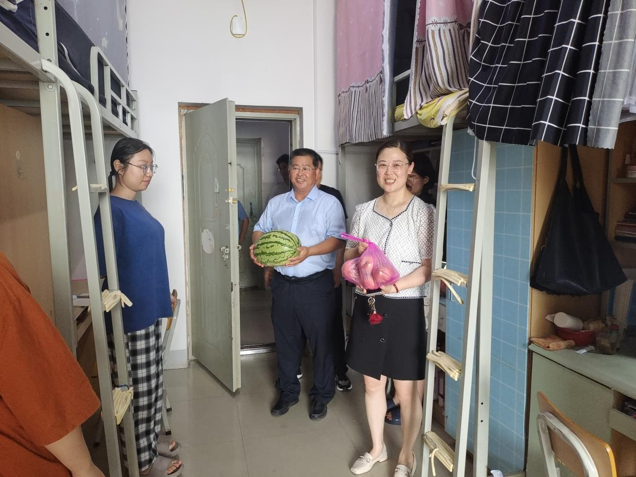 为进一步做好留校学生的安全管理工作,把对学生的关心关怀落到实处,7月21日上午,sunbet游戏官网党委书记郭宁、院长孙旭携学院领导班子及毕业班辅导员到学生宿舍看望慰问留校备战的考研学子们。