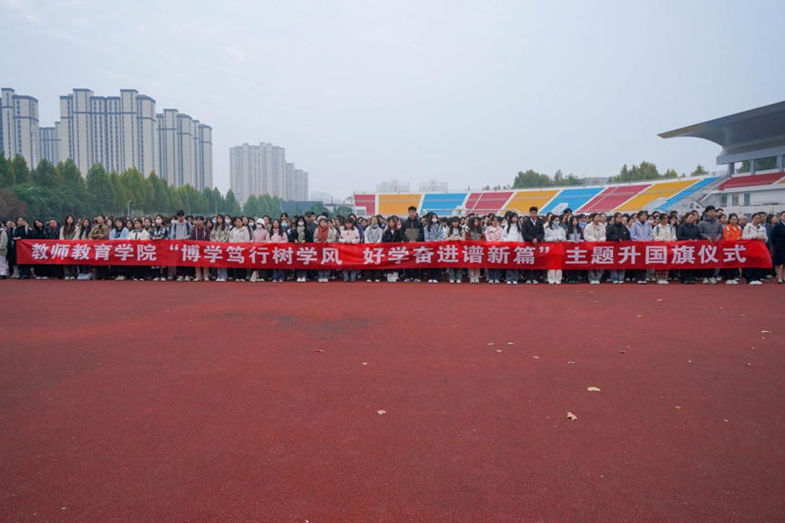 为进一步加强学风建设,营造良好的学习氛围。11月4日,sunbet游戏官网于梁园校区体育场举行“博学笃行树学风 好学奋进谱新篇”主题升国旗仪式。学生处处长韩坤、副处长袁慧,sunbet游戏官网领导班子、辅导员以及全体学生参加活动。仪式由学院辅导员张旖旎主持。