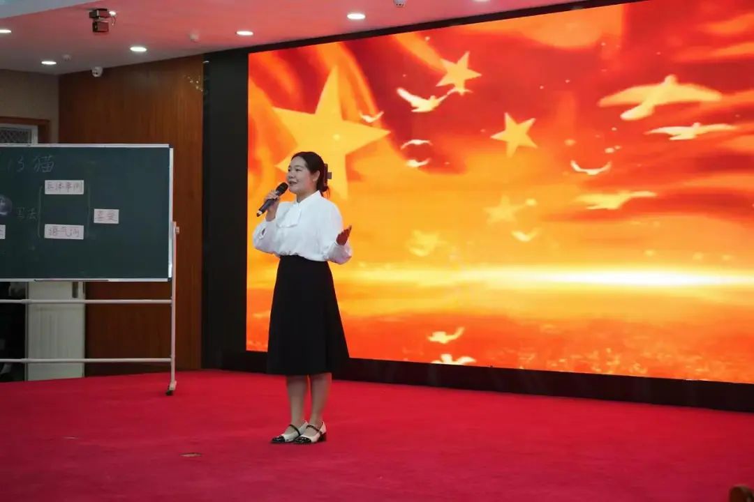 赛后,评委田晶老师对参赛选手的表现给予了充分的肯定,又从教学理念、教案设计、教学设计与实施、教学重点、课程讲授、板书设计和才艺展示等方面进行了点评并提出完善意见。