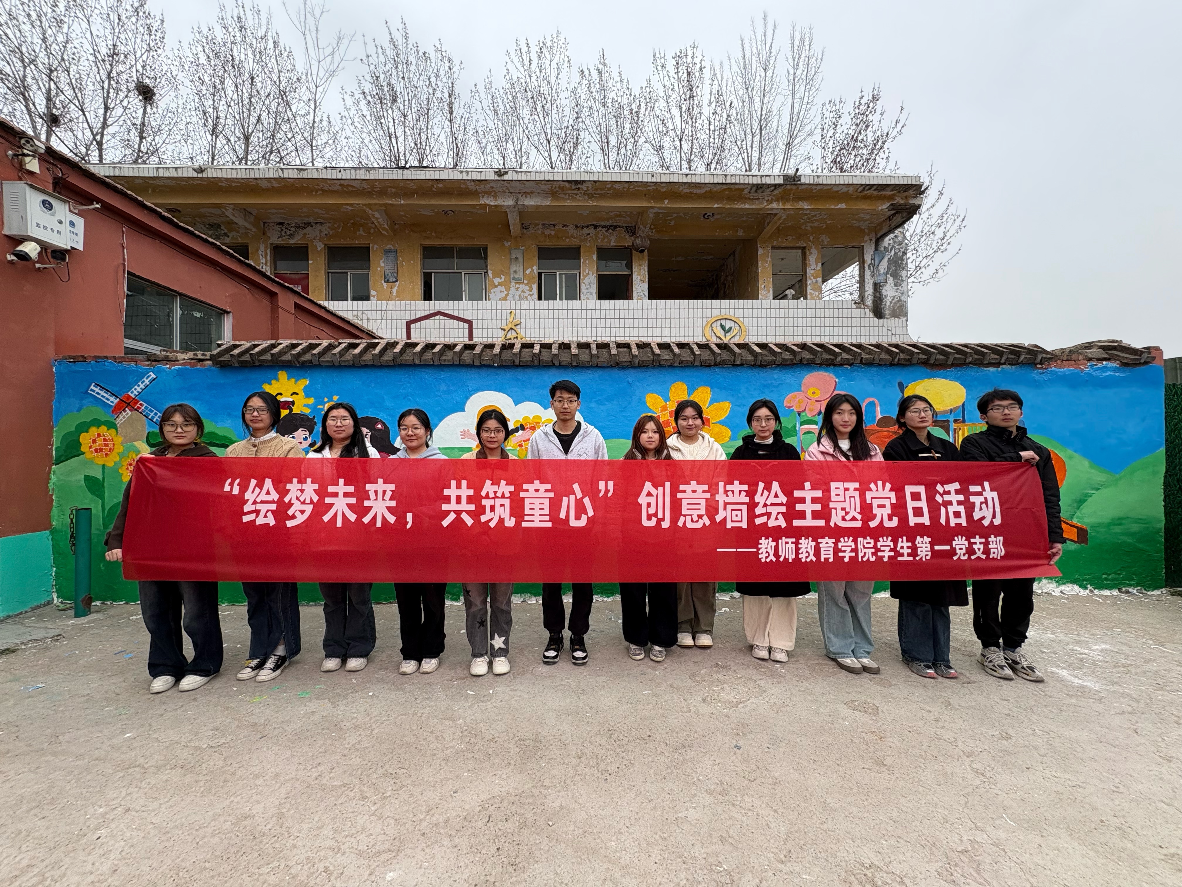 为大力弘扬雷锋精神,2025年3月14日,sunbet游戏官网学生第一党支部于商丘市田庄小学,开展了“绘梦未来,共筑童心——雷锋精神进校园”创意墙绘主题党日活动。