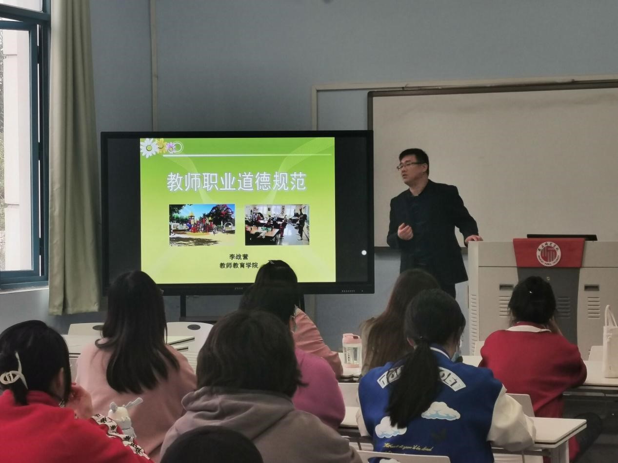 为了培养学生教师职业道德的自觉性,提高教师职业道德素养,10月28日,sunbet游戏官网副院长李战营在行方楼201教室为学前教育20-1班全体学生做了题为“教师职业道德规范”的讲座。