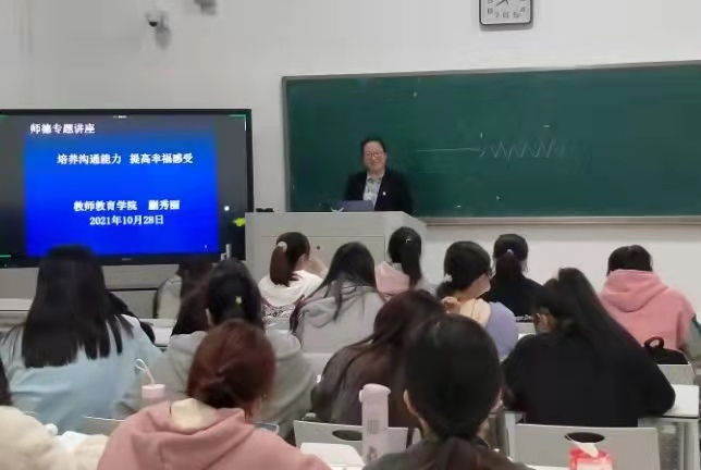 为提高小学教育专业学生的职业道德素养,全面加强师范生的师德师风建设,10月28日,sunbet游戏官网于行方楼210教室开展了“培养沟通能力 提高幸福感受”的师德专题讲座。