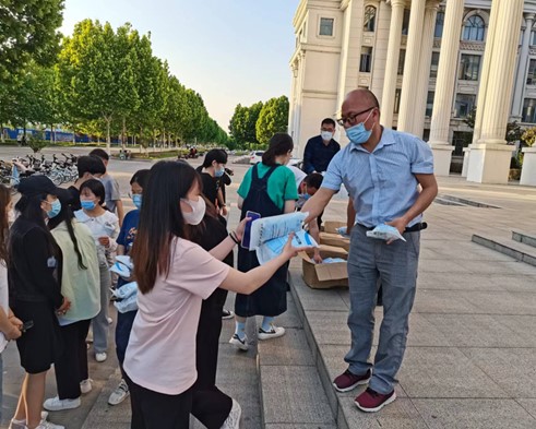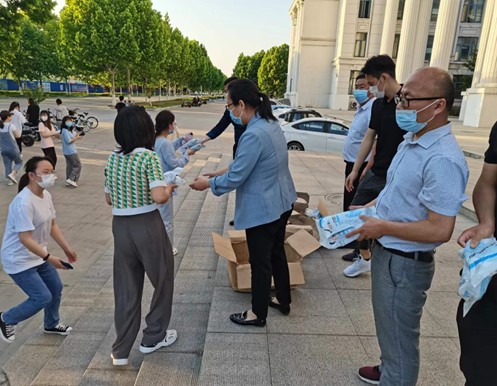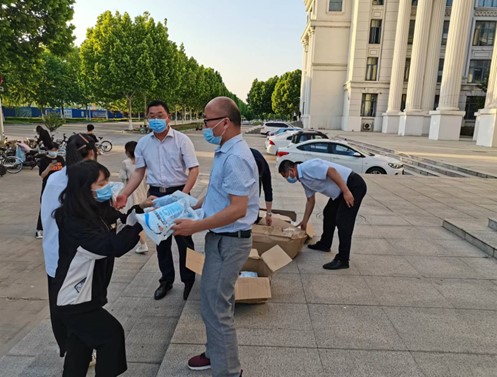 为扎实推进党史学习教育,在师生切身利益上“下功夫”,将“我为师生办实事”主题实践做实、做细,sunbet游戏官网于5月20日下午18:00在汉梁楼西侧开展为全院建档立卡学生发口罩送温暖活动。我院领导班子成员和全体辅导员参加此次活动。