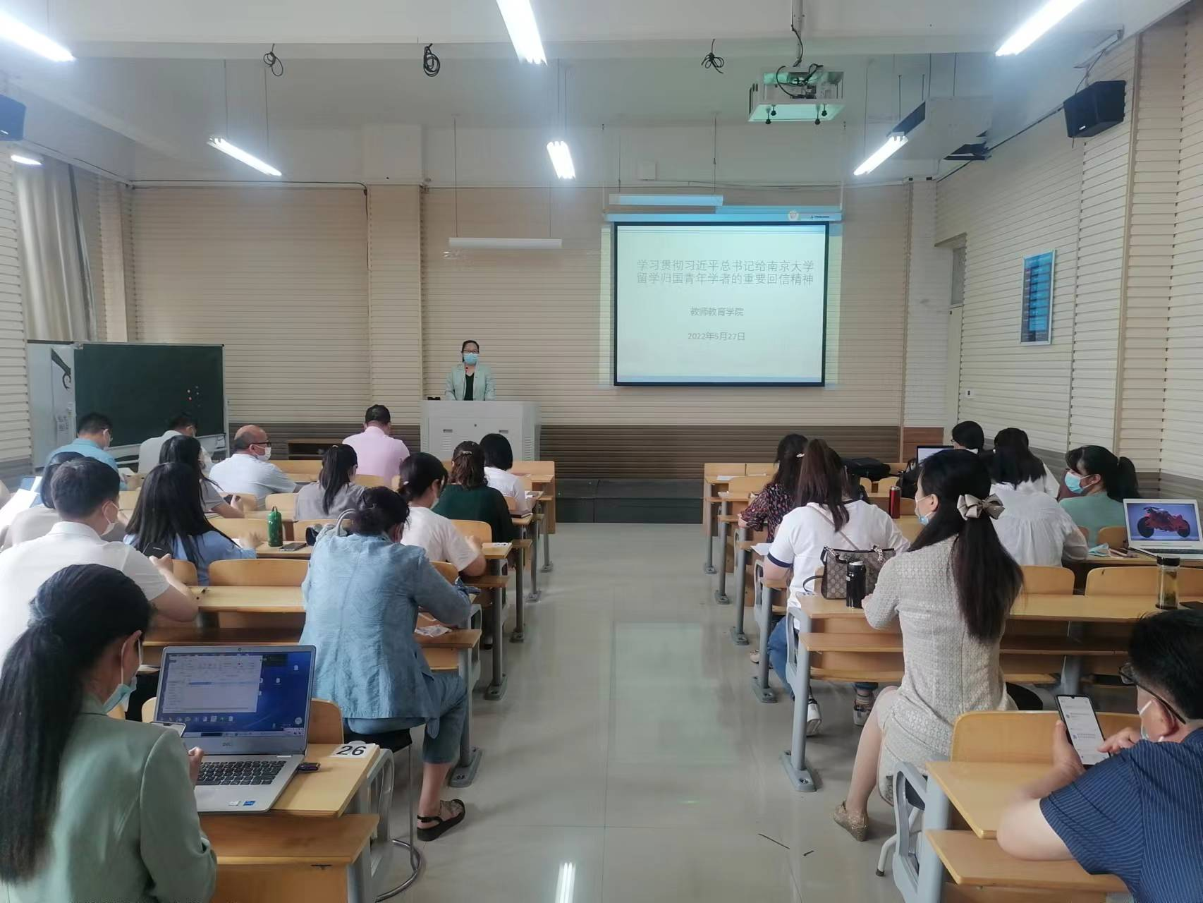 5月27日下午,sunbet游戏官网在汉梁楼310多媒体教室,召开政治理论学习会议,认真学习贯彻习近平总书记给南京大学留学归国青年学者的重要回信精神,全体教职工参加,会议由党委书记蒯秀丽主持。