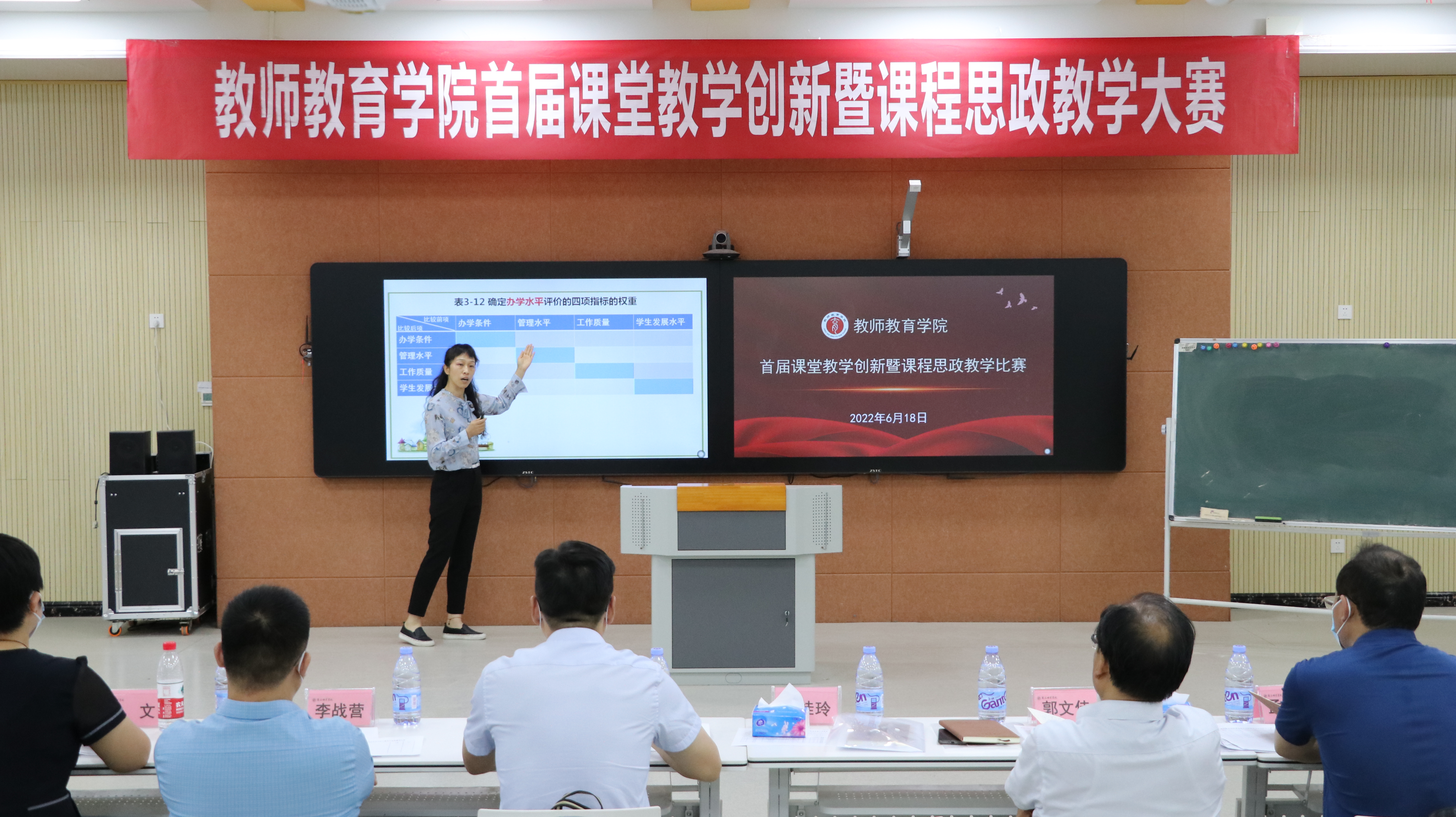 为深入推进课程教学范式综合改革,持续提高教师教学能力和课程思政建设水平,根据学院《“课堂教学质量提升年专项行动”实施方案》和《课程思政建设工作计划》,在前期初赛的基础上,6月18日,sunbet游戏官网课堂教学创新暨课程思政教学比赛在汉梁楼123教室举行。副校长郭文佳,相关职能部门负责人和sunbet游戏官网全体教师共同参加本次活动。