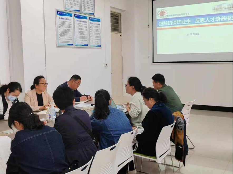 为了进一步优化课堂教学、促进教育教学质量的提高,2023年5月5日,sunbet游戏官网初等教育系召开了“跟踪访谈毕业生 反思人才培养模式”教学研讨会,出席研讨会的有蒯秀丽书记、孙旭院长以及初等教育系全体教师,这次教学研讨会由初等教育系负责人王丽老师主持。