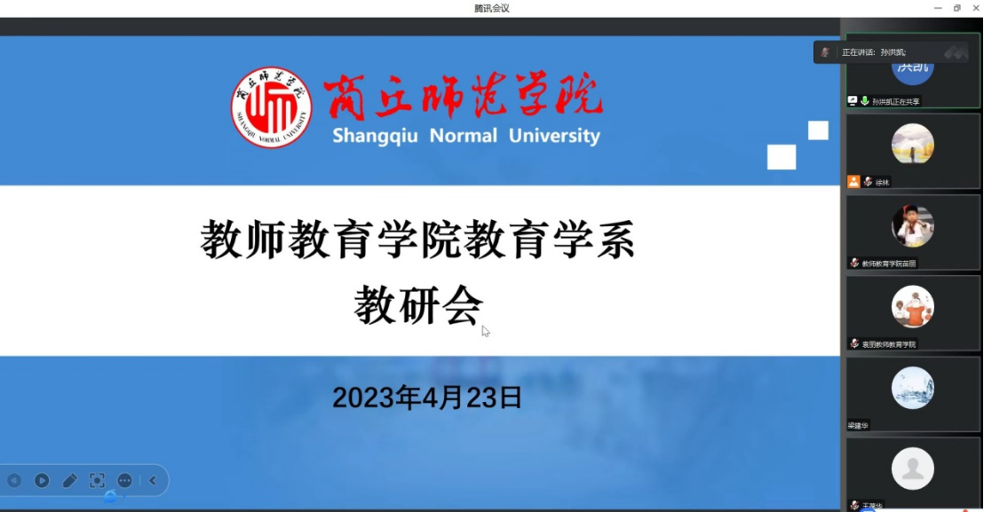 2023年4月23日,sunbet游戏官网教育学系通过腾讯会议组织开展了线上教研例会,本次教研例会的主题是讨论教育学专业人才培养方案修订及课程设置。本次会议由孙洪凯老师主持,教育学专业全体教师参加。
