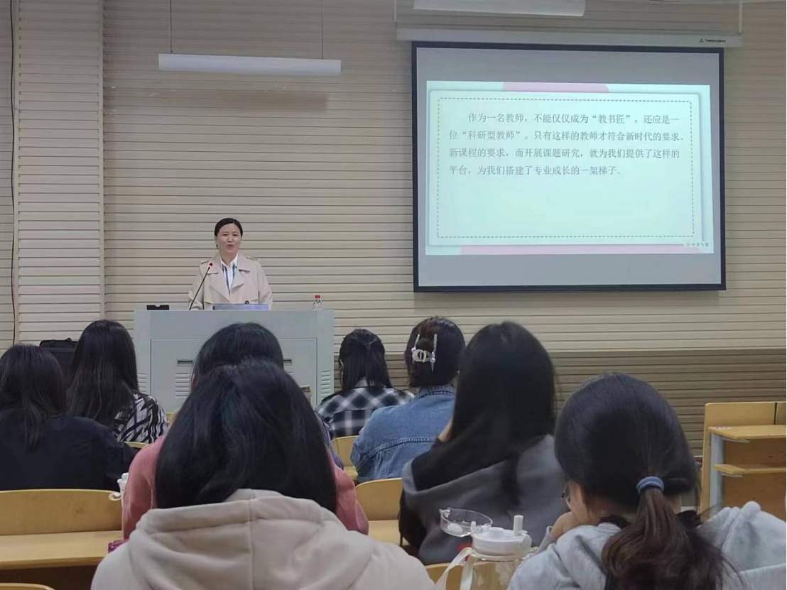 路娟老师以自己主持撰写的课题研究报告为例,从“课题立项申报”“课题开题”“课题中期”“课题结题”这四个部分向同学们详细讲解如何设计出优秀规范的课题。同时,在讲解课题立项申报时,路娟老师根据自己的经验,结合具体的文献重点讲解课题的来源、课题设计论证、完成课堂的条件和保障。最后,路娟老师以汪国真的《青春》教导同学们要及时把握青春时光,绽放绚丽的青春之花。