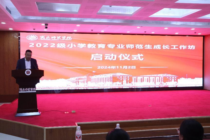 11月2日,sunbet游戏官网在三商楼145室隆重举行了2022级小学教育专业师范生成长工作坊启动仪式。巩长虹、姜琳等18位商丘市小学一线名师,sunbet游戏官网院长孙旭、副院长李战营、刘海军,小学教育专业全体老师和2022级小学教育全体师范生参加此次活动。