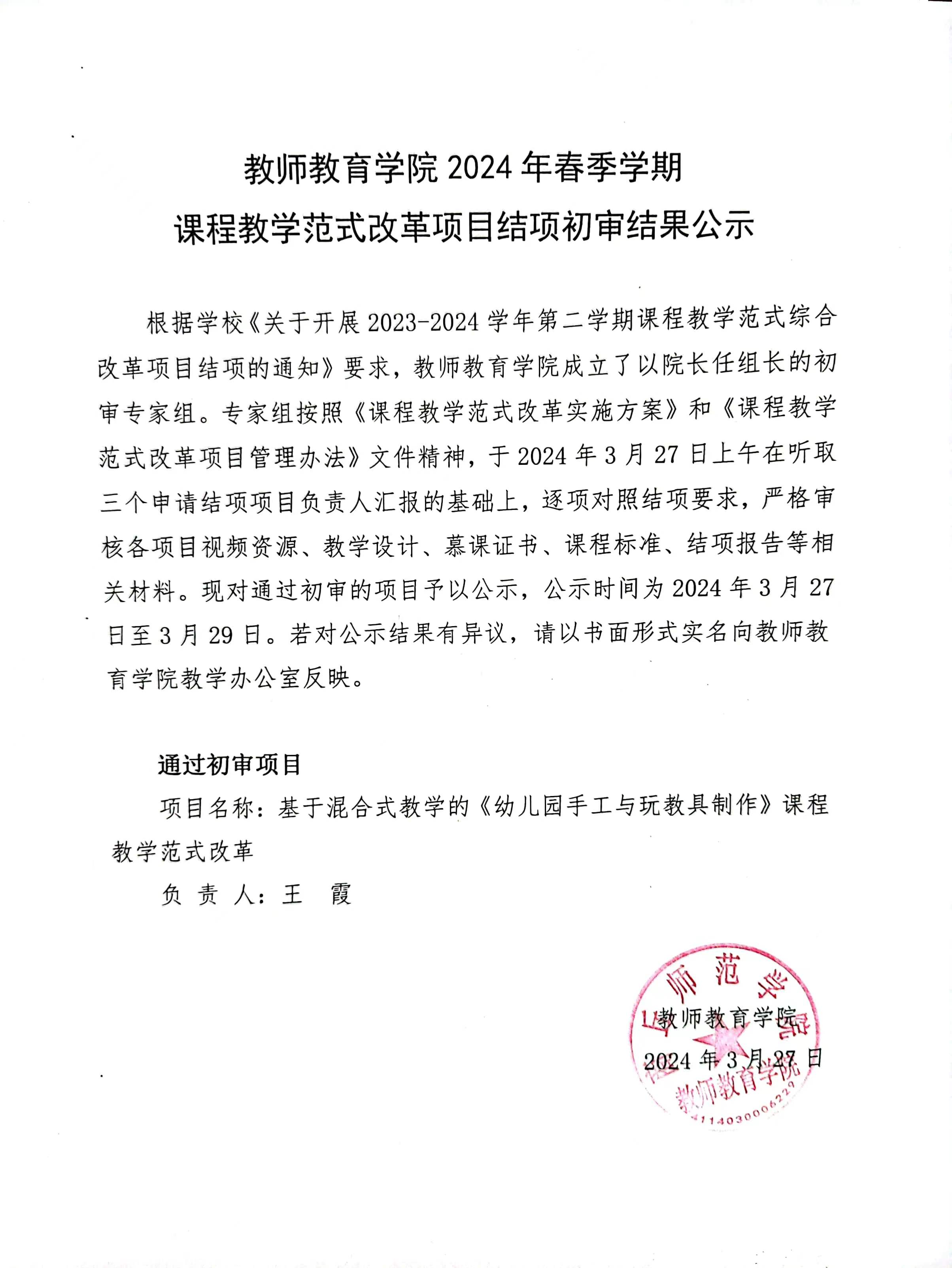 sunbet游戏官网2024届师范生教师资格免试认定教育教学能力考核结果公示